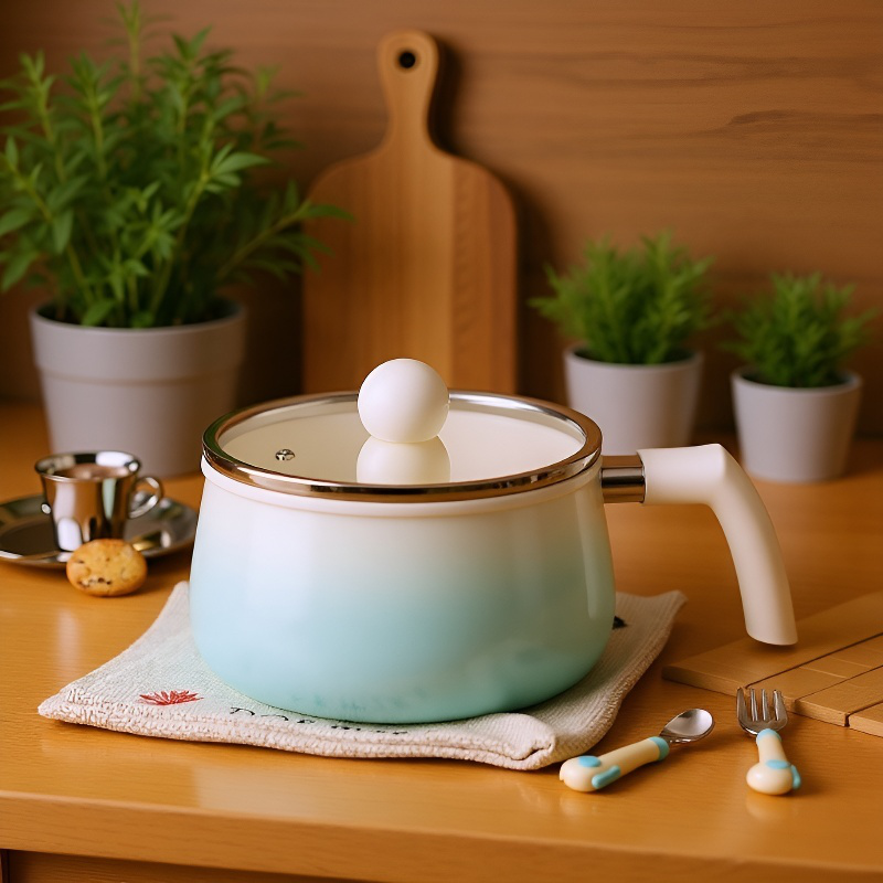 비주얼 작은젖냄비 전용 세라믹 그라데이션 냄비 아기 이유식 냄비 코팅 작은젖냄비
